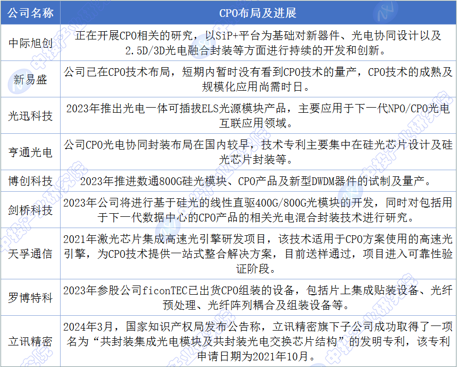 圖表:國(guó)內(nèi)CPO企業(yè)布局及進(jìn)展