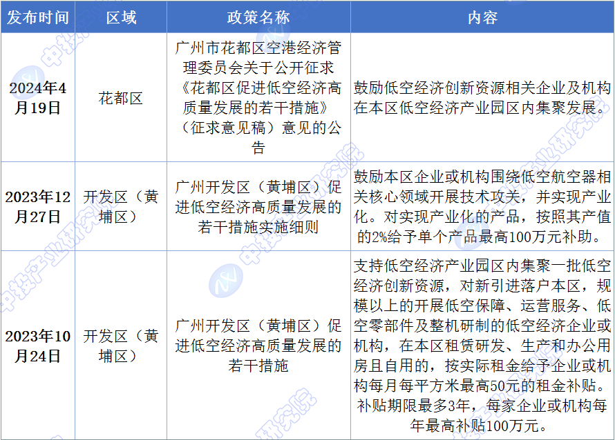 圖表:廣州市各區(qū)低空經(jīng)濟(jì)支持政策要點(diǎn)