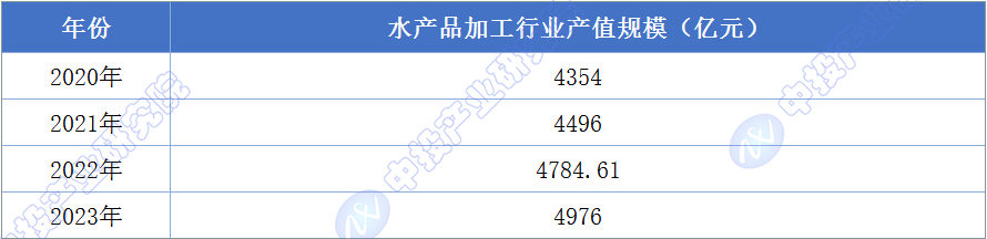 圖表:2020-2023年中國(guó)水產(chǎn)品加工行業(yè)產(chǎn)值規(guī)模