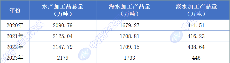 圖表:2020-2023年全國(guó)水產(chǎn)加工品總量