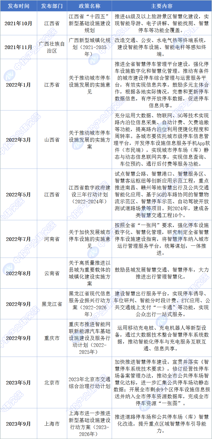 圖表:部分省市智慧停車行業(yè)相關(guān)政策
