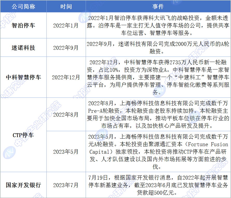 圖表:2022-2023年中國智慧停車企業(yè)融資動態(tài)