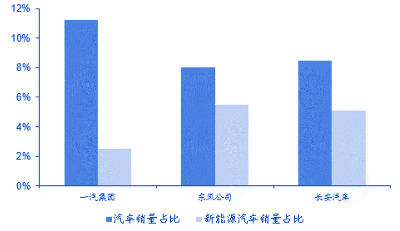圖表:2023年三大汽車央企的新能源汽車銷量占比