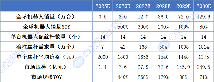 圖表:全球人形機(jī)器人絲杠市場(chǎng)規(guī)模預(yù)測(cè)