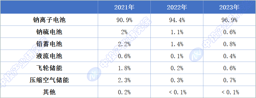 圖表:2021-2023年全球新型儲(chǔ)能市場(chǎng)累計(jì)裝機(jī)結(jié)構(gòu)變化