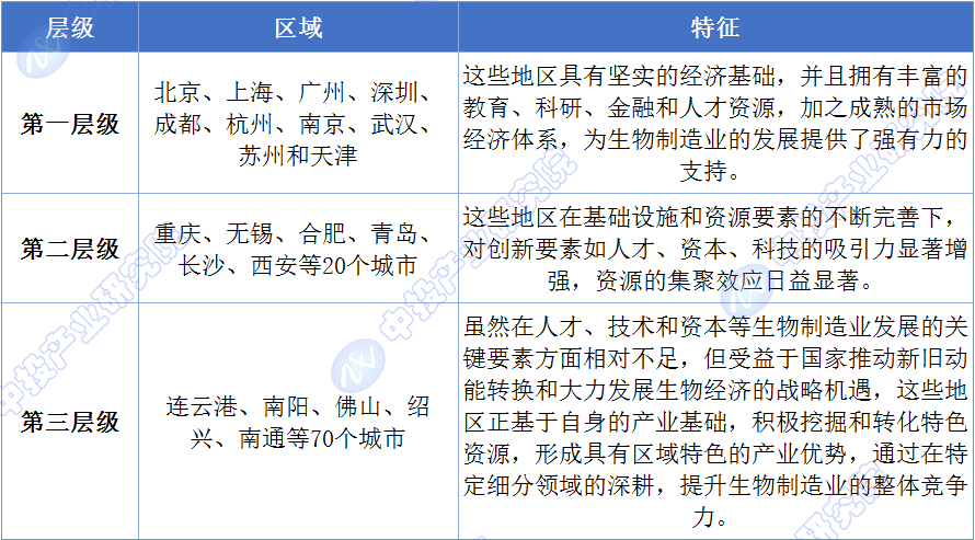 圖表:國內(nèi)生物制造業(yè)的重點城市層級