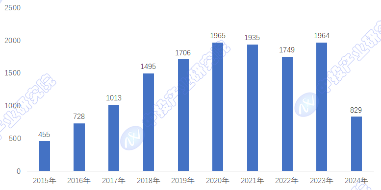 圖表:2015-2024年智慧停車相關企業(yè)注冊規(guī)模變化