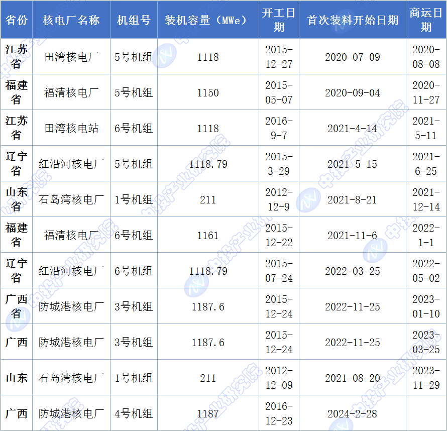 圖表:2020-2024年投入商運核電機(jī)組信息