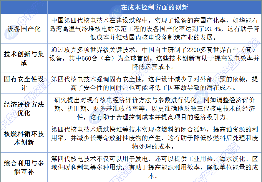 圖表:中國第四代核電技術(shù)在成本控制方面的創(chuàng)新
