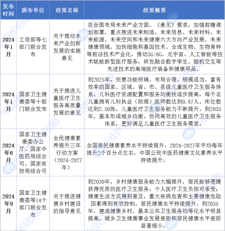 圖表:2024年大健康產(chǎn)業(yè)重點(diǎn)政策匯總