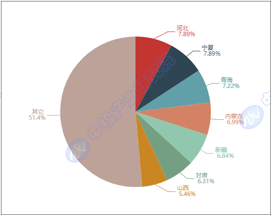 2023年1-12月,太陽能發(fā)電量前七的省份依次為河北、寧夏、青海、內(nèi)蒙古、新疆、甘肅、山西,累計總占全國總的48.59%。