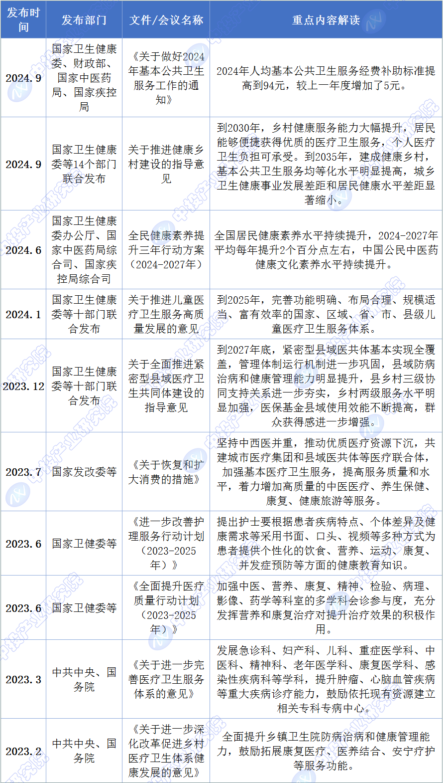 圖表:2023-2024年健康服務行業(yè)國家層面相關政策匯總