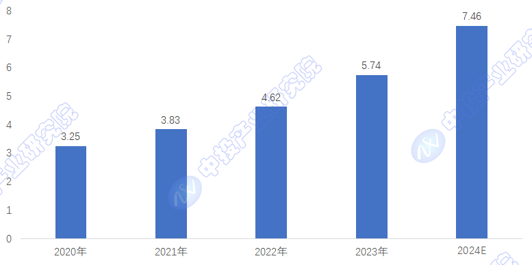 中投產(chǎn)業(yè)研究院發(fā)布的《2024-2028年中國未來產(chǎn)業(yè)之手術機器人行業(yè)趨勢預測及投資機會研究報告》指出,近年來,隨著人口老齡化的加劇和醫(yī)療技術的不斷進步,骨科手術機器人市場呈現(xiàn)出快速增長的趨勢。2023年中國骨科手術機器人市場規(guī)模約5.74億元,近四年來復合增長率為20.9%。預計2024年中國骨科手術機器人市場規(guī)模將增長至7.46億元。