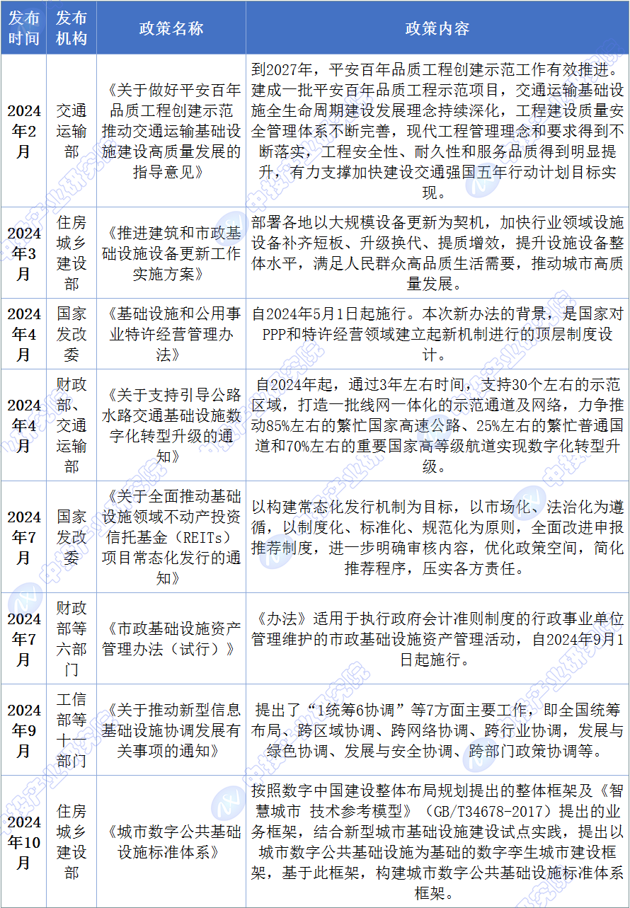 圖表:基礎(chǔ)設(shè)施相關(guān)政策匯總